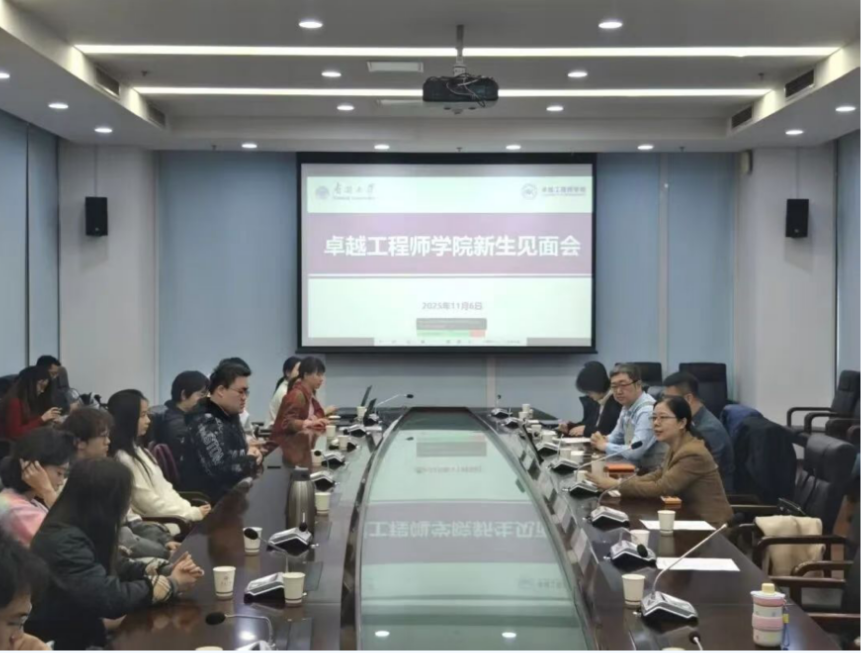 2025年11月6日,南开大学卓越工程师学院2025级新生见面会在津南校区综合业务东楼101会议室隆重举行。学院党委书记贺文霞,执行院长程明明,党委副书记、副院长王蔚,副院长张晓丹,企业导师代表新兴际华集团有限公司王海青老师等领导出席。新生见面会由贺文霞主持,全体新生通过线上线下相结合的方式参会。作为学院成立后入学的首批研究生,将与学院和企业一道共同探索产教融合育人新模式,也将在这里树立“工程报国”理想、夯实专业根基、勇担时代重任。