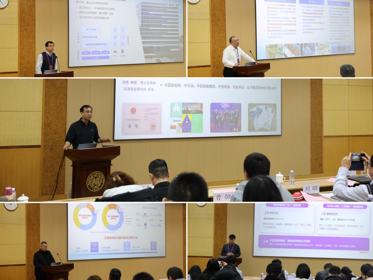 在随后的产业技术与科研成果报告环节,南开大学软件学院院长张海宁介绍了学院在关键软件领域的科研布局与人才培养成效。中国兵器工业集团沈彦平、马燕琳、曹恒三位专家围绕脑机接口技术、火力资源需求预测与分配优化等方向作了专题报告。国家超级计算天津中心副主任龚春叶则系统阐述了太空超算的概念内涵、技术挑战与应用前景。麒麟软件有限公司高级经理韩福海分享了银河麒麟智算操作系统与AI融合的创新实践。中海油田服务股份有限公司的专家耿铁、刘晓斌则聚焦能源领域提出了关键技术需求与合作展望。南开大学人工智能学院刘杰教授介绍了数据与知识双轮驱动的高效大模型理论与应用进展,北京经纬恒润科技股份有限公司中央研究院副院长刘昭则聚焦C-V2X系统在港口无人驾驶中的智能网联技术应用作了深度报告。
